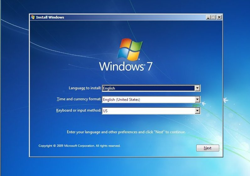 To begin install insert your Windows 7 Home Premium DVD and reboot you computer. You may get prompted to press a key to boot of DVD. Click any key on keyboard to boot.