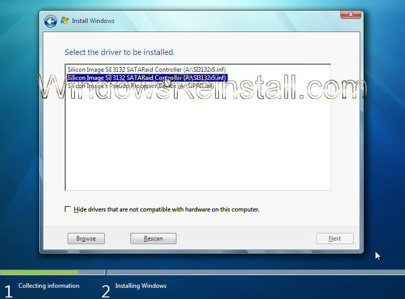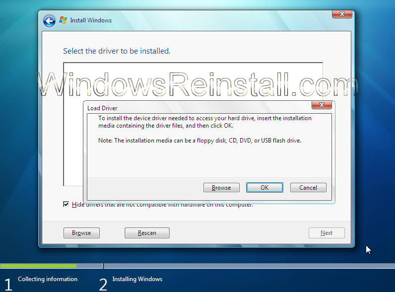 Load Driver Options Menu: Next you will select the location of the install. The hard drive is not seen due to Windows 7 not having the driver. This driver should be supplied with your motherboard, if not it will be available for download from the motherboards manufacturer. This file will then needed extracted and copied a Floppy, CD or USB storage device.