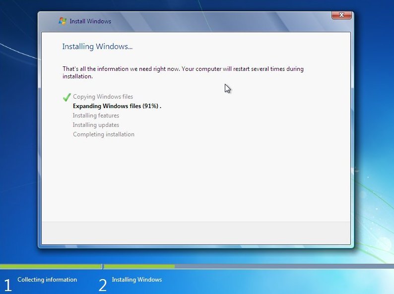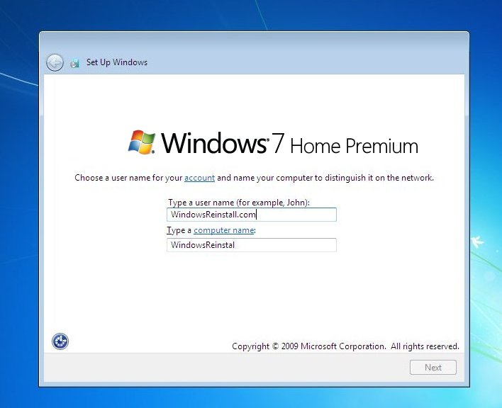 Windows 7 will now start the reinstall procedure.