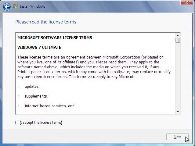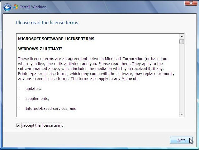 ....read them click on "I accept the License terms", then click "Next" to continue. If you don't agree then this is as far as you can go :(