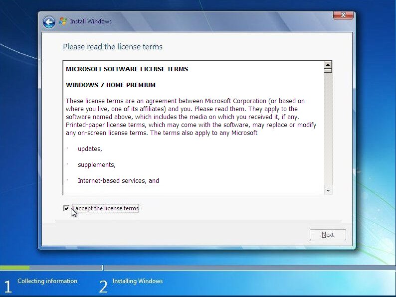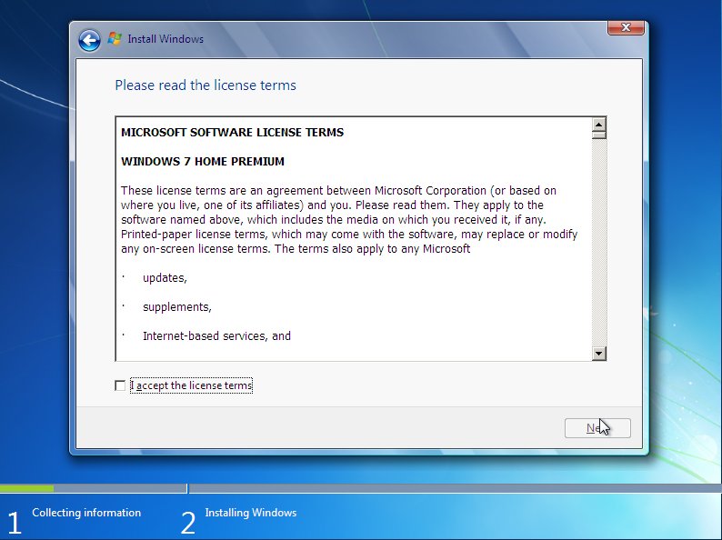 ....read them click on "I accept the License terms", then click "Next" to continue. If you don't agree then this is as far as you can go :(